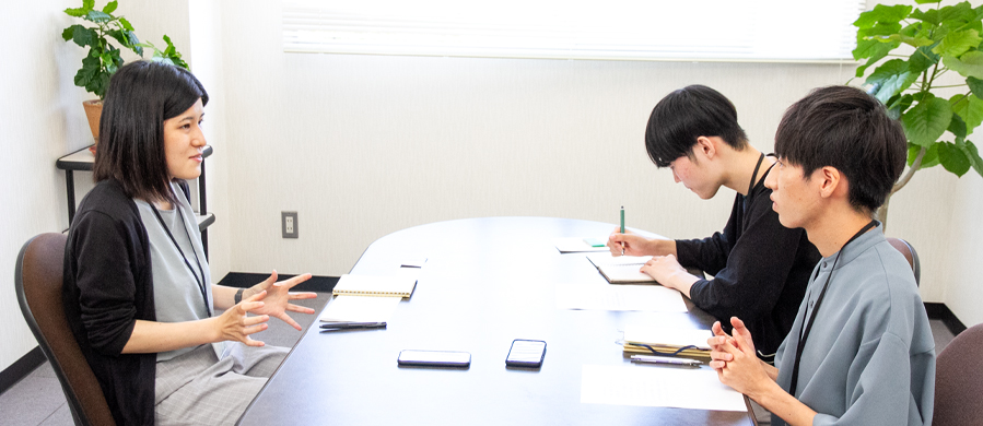 今回は日本福祉大学に通う学生2人が、半田中央印刷株式会社で働く小川さんを訪問インタビュー。就活時のエピソードや今の仕事について伺いました。(取材日:2022.9.5)